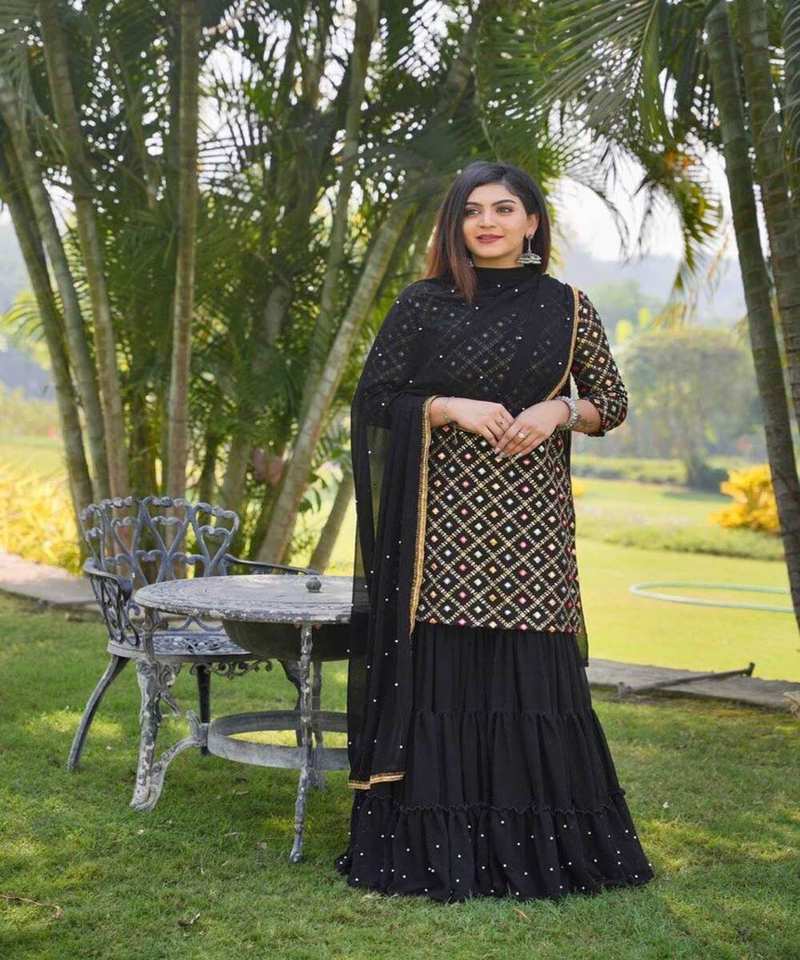 เสื้อผ้าสไตล์พื้นเมืองของสะสมมาใหม่เสื้อผ้าตามเชื้อชาติ Gujarat + Sharara