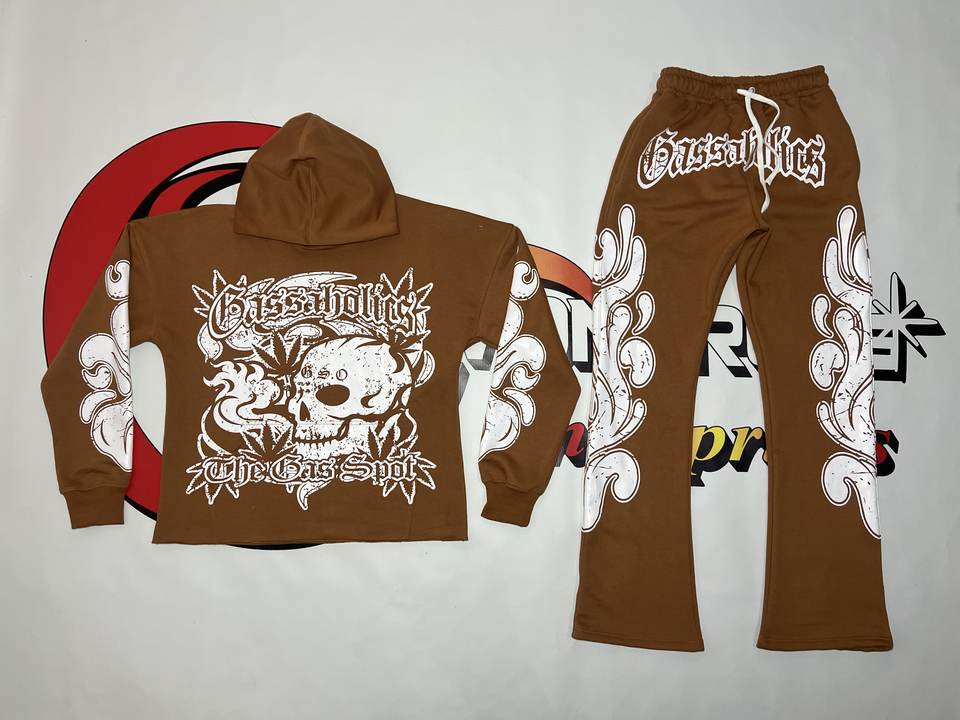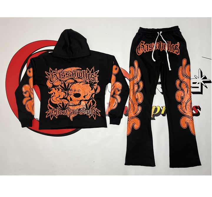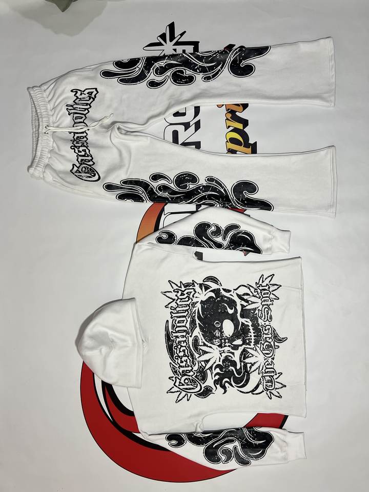 สินค้ามาใหม่ ชุดเซ็ตฮู้ดดี้และกางเกงวอร์มทรงบ็อกซี่ฟิตสำหรับผู้ชาย ออกแบบเองได้ พิมพ์ลายสกรีน ทรงหลวม ขาบาน ชุดวอร์มผู้ชาย