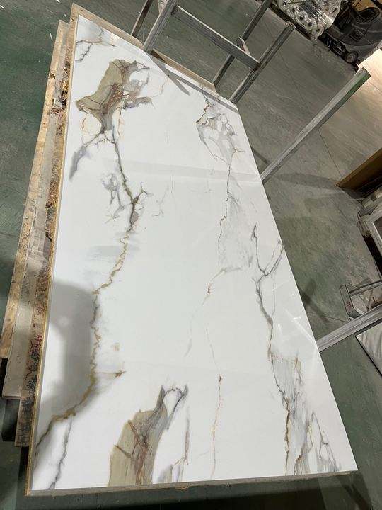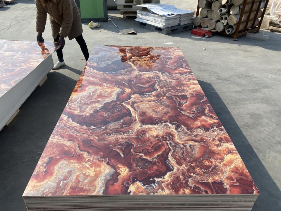 แผ่นพีวีซีลายหินอ่อน UV ขนาด 1220 มม.*2440 มม. ดีไซน์ใหม่ สำหรับตกแต่งภายใน
