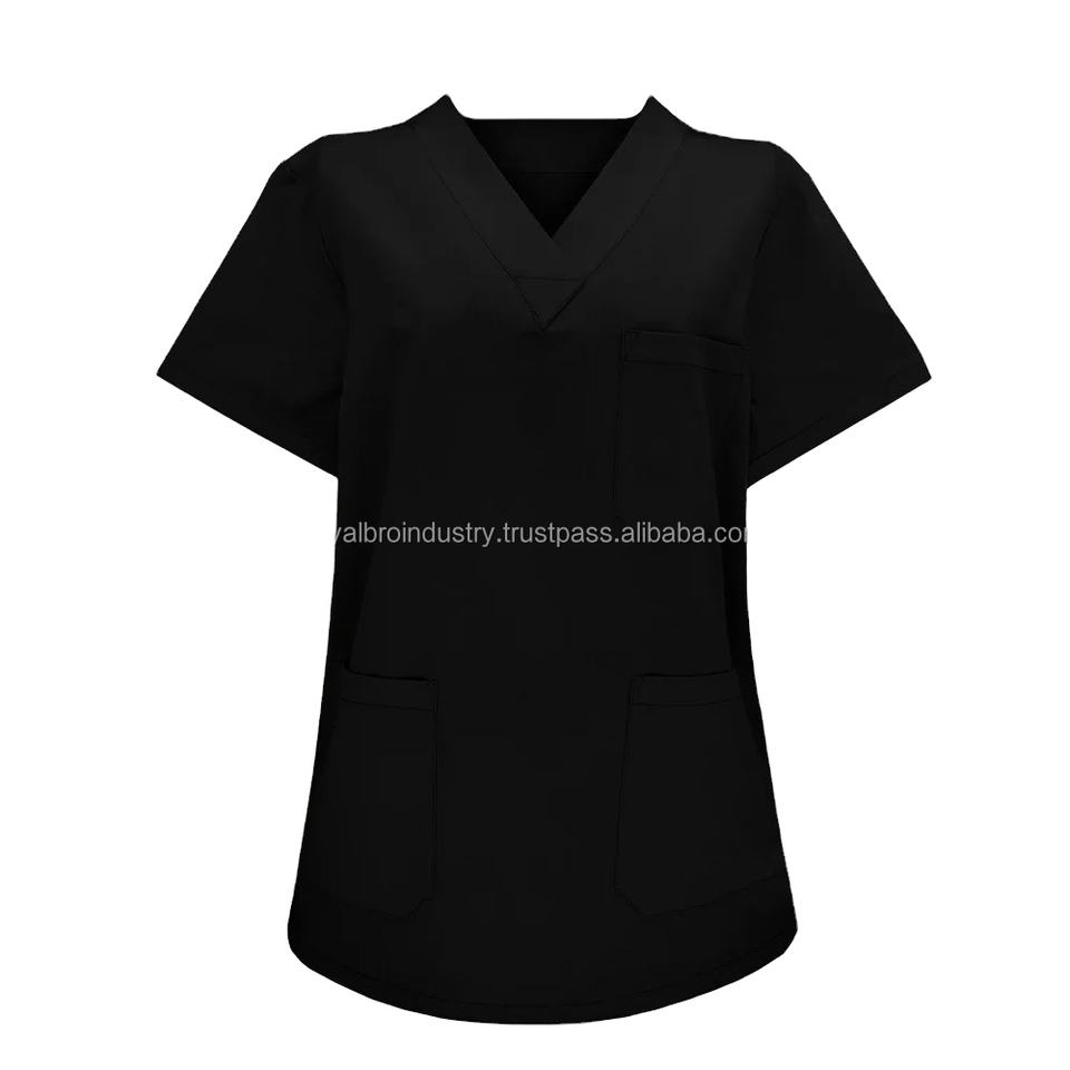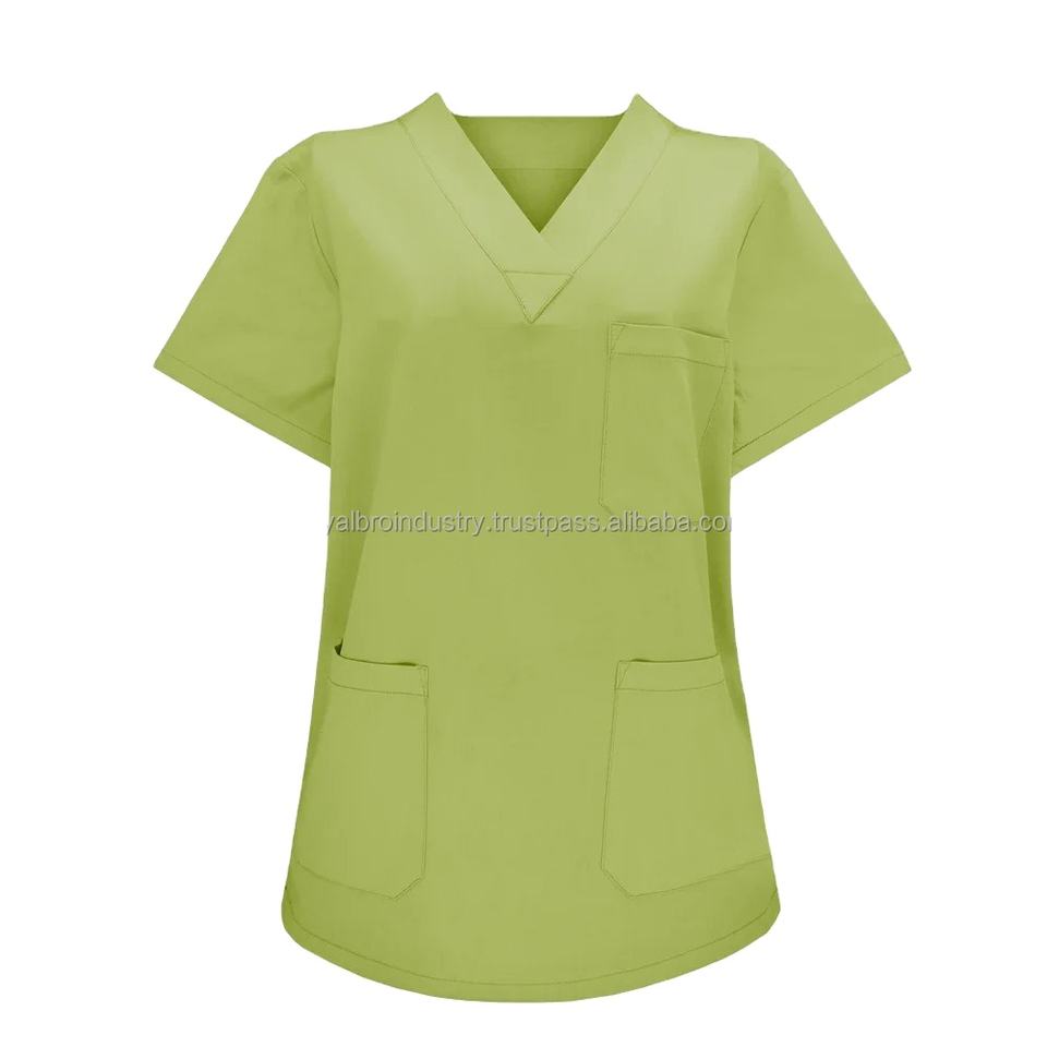 เสื้อสครับแพทย์หญิงแบบใหม่ คอวี ผ้าทอ ระบายอากาศได้ดี สวมใส่สบาย ชุดยูนิฟอร์มโรงพยาบาล ไซส์ XS-XXL