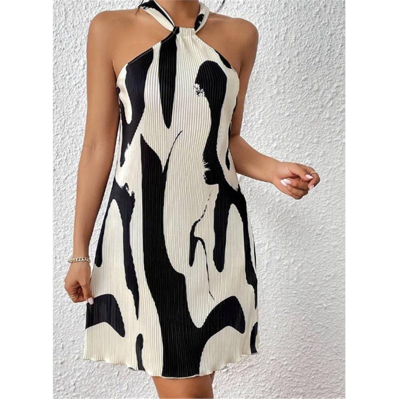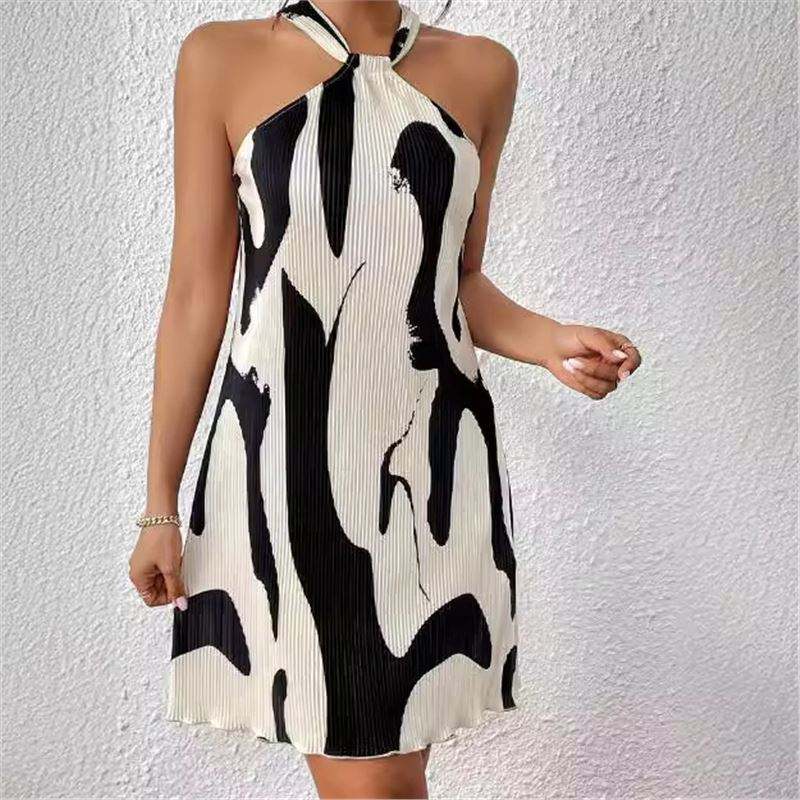 ชุดเดรสเปิดไหล่พิมพ์ลายเซ็กซี่สำหรับผู้หญิงใหม่สำหรับฤดูใบไม้ผลิและฤดูร้อน