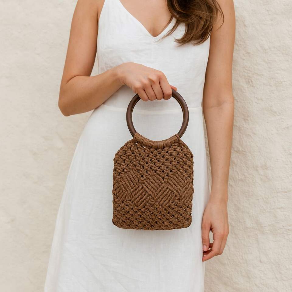 กระเป๋าถือมาคาเม่ผ้าฝ้ายธรรมชาติดีไซน์แบบปรับแต่งได้หลากหลายรูปแบบสำหรับป้ายงานแต่งงาน