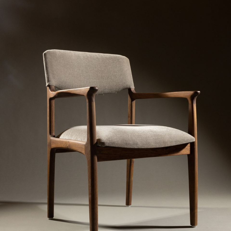 เก้าอี้ทานอาหารสไตล์นอร์ดิกโมเดิร์นพร้อมโครงโลหะและที่วางแขนไม้