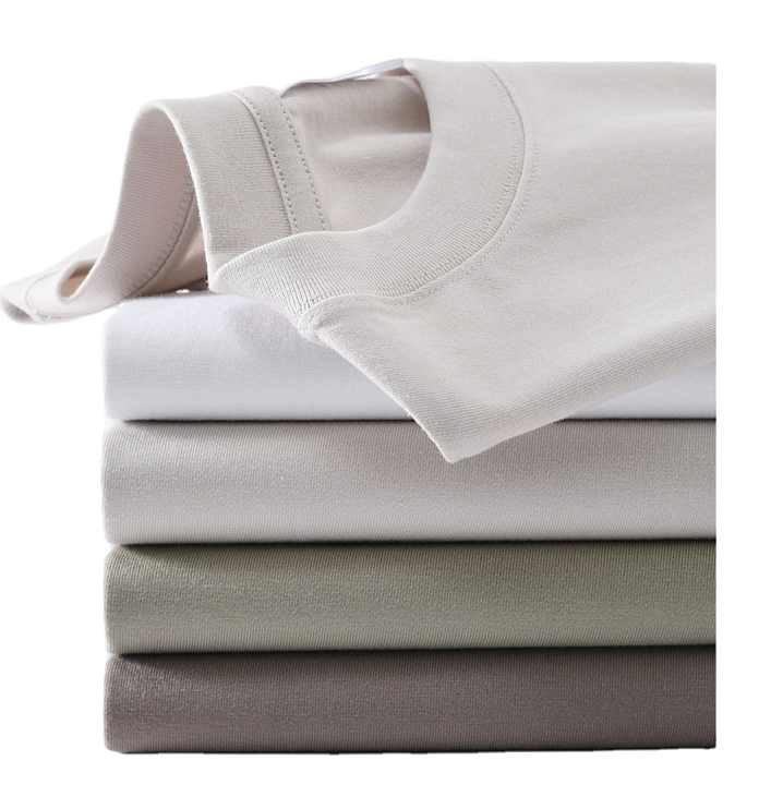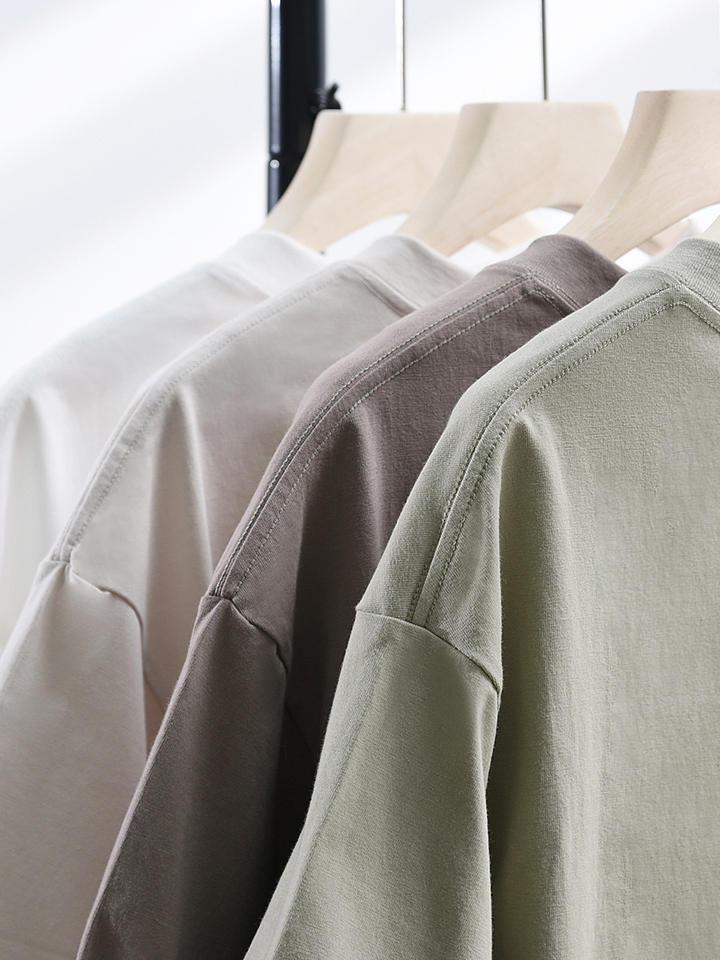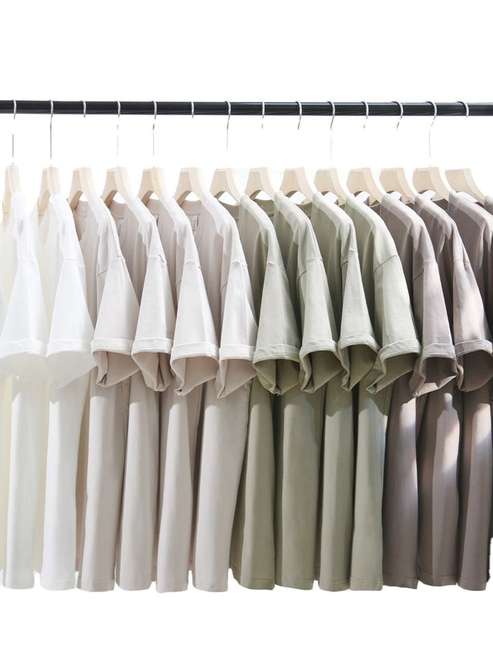 เสื้อยืดคอกลมแขนหลวมผ้าฝ้ายหนัก230กรัมดีไซน์ปักโลโก้ออกแบบได้ตามต้องการน้ำหนักฤดูร้อน