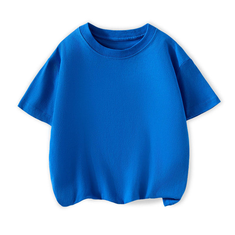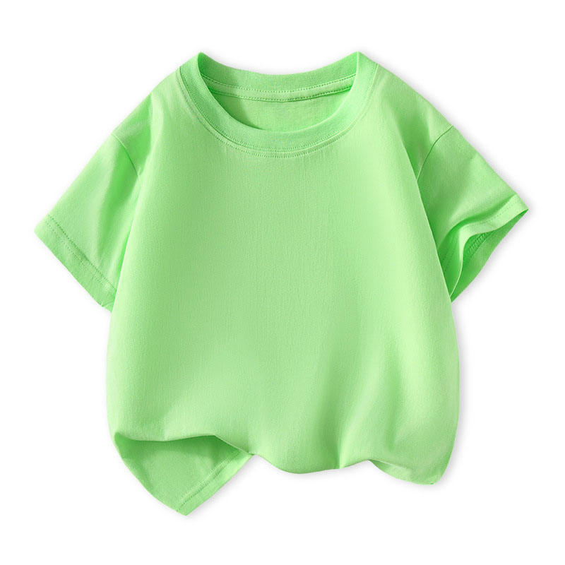 เสื้อยืดแขนครึ่งแขนสำหรับเด็กผู้ชายเด็กผู้หญิงผ้าฝ้ายแท้คอกลมสีพื้นสำหรับฤดูร้อนออกแบบโลโก้ตามสั่ง