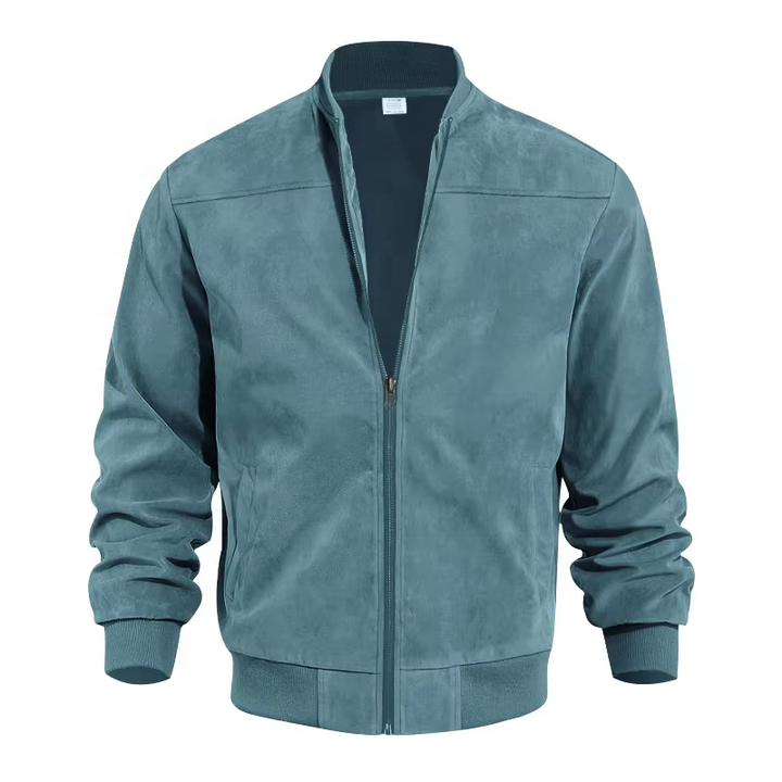 แจ็กเก็ตหนังนิ่มแขนยาวสำหรับผู้ชายสีทึบมีซิปสำหรับฤดูใบไม้ร่วง