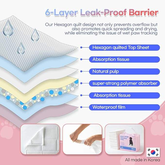 แผ่นรองฉี่สุนัข H.A.C PLUS แบบ OEM ODM 6 ชั้น ป้องกันการรั่วซึม ดูดซับดีเยี่ยม ขนาด 30 x 24 นิ้ว แพ็ค 40 ชิ้น สีขาว ผลิตในเกาหลี
