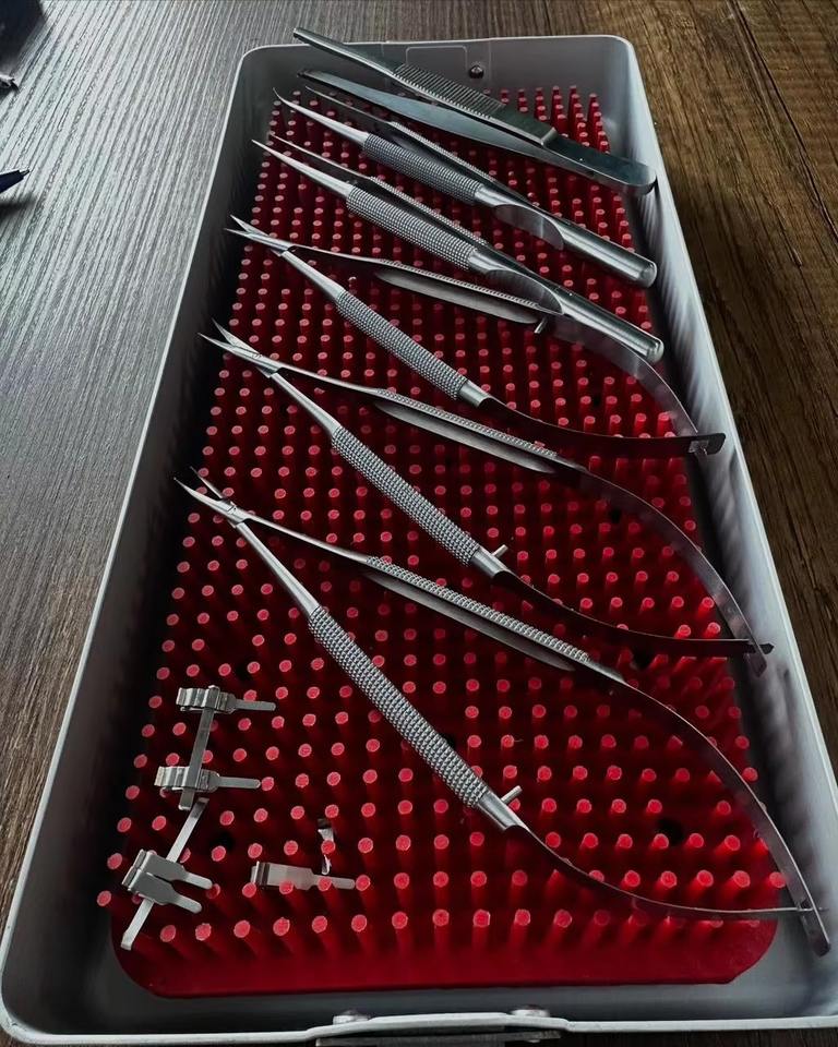 ชุดเครื่องมือจักษุวิทยาขนาดเล็ก 10 ชิ้น ทำจากเหล็กกล้าไร้สนิมเยอรมัน กรรไกร คีมตัดเยื่อแก้วตา พร้อมถาด ชุดผ่าตัดตา