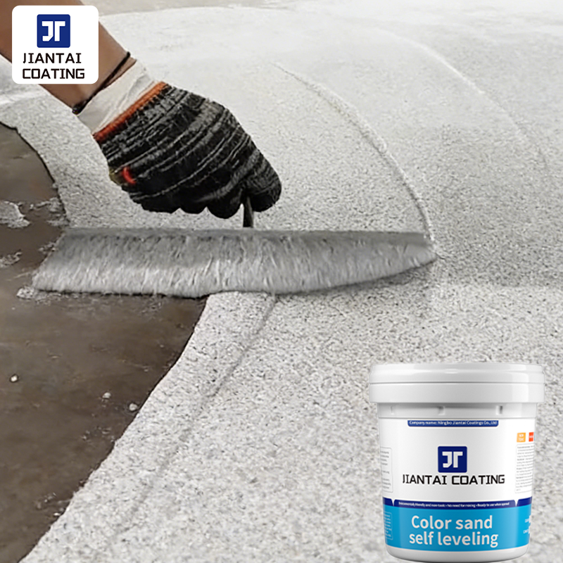 สีเคลือบพื้นอีพ็อกซี่กลางแจ้งแบบทรายสี ปรับระดับได้เอง ลายหินอ่อน ทนทานต่อการสึกหรอ สีทาพื้นกันน้ำ