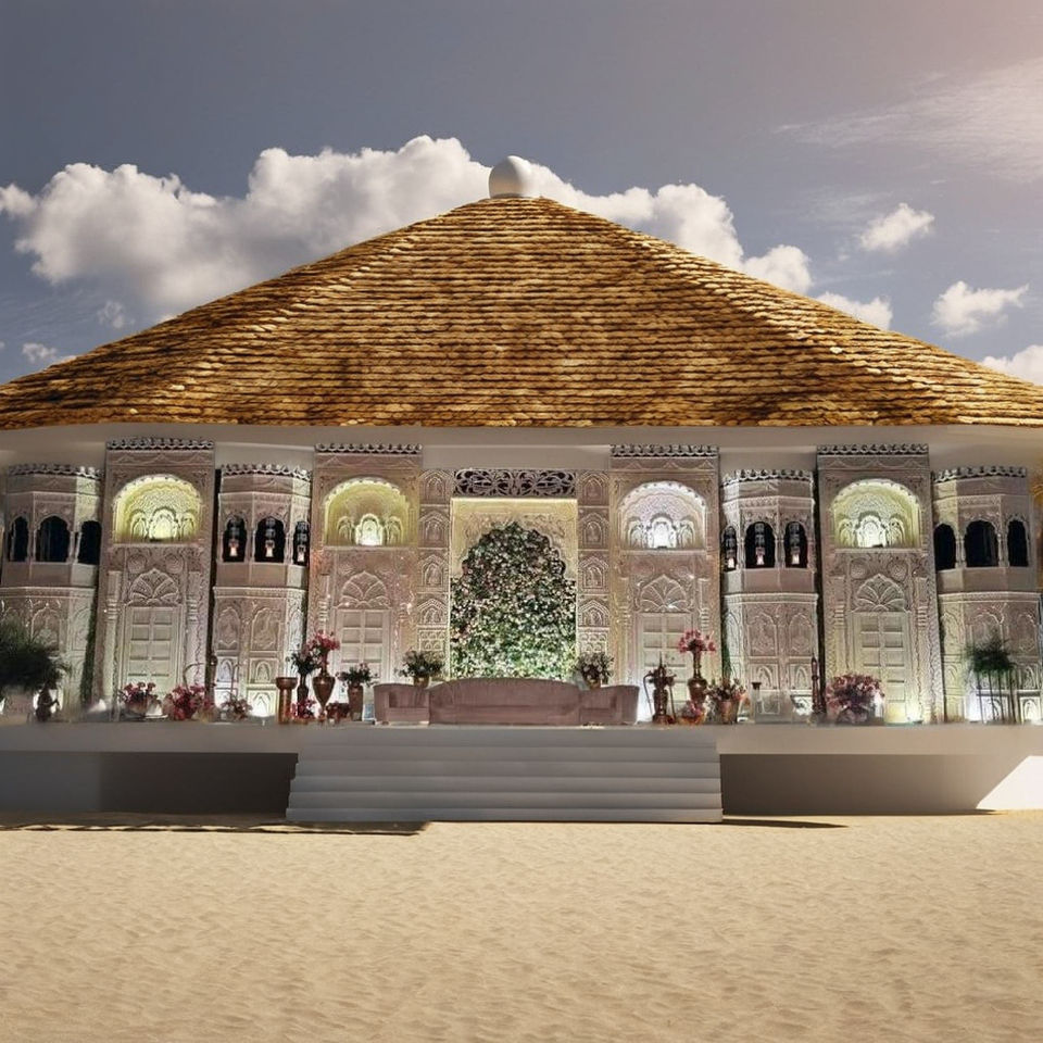 เวทีงานแต่งงานแบบอินเดีย/ซุ้มโบโฮ/มณฑปงานแต่งงานแบบราชวงศ์ ผลิตจากวัสดุไฟเบอร์ผสมเหล็ก ทนทาน เป็นมิตรกับสิ่งแวดล้อม เหมาะสำหรับใช้งานกลางแจ้ง