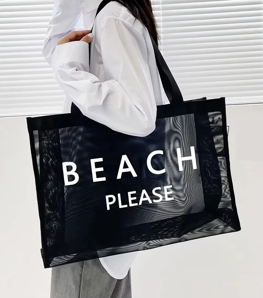 กระเป๋าช้อปปิ้งสะพายไหล่ผ้าไนลอนขนาดใหญ่ใส่ผักผลไม้ตาข่ายสีดำกระเป๋าช้อปปิ้ง