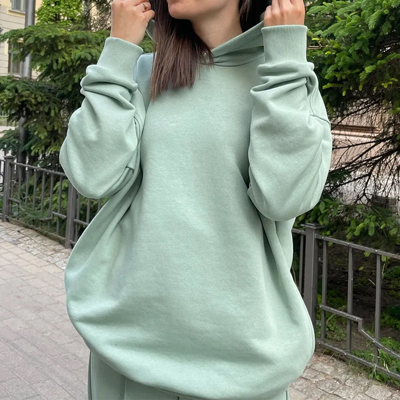 ชุดวอร์มทรงเข้ารูปปรับแต่งได้ ผ้าเฟรนช์เทอร์รี่ 400 กรัม น้ำหนักเบา โพลีเอสเตอร์/คอตตอน แขนยาว สไตล์สตรีทแวร์ คอเสื้อแบบฟิตเนส