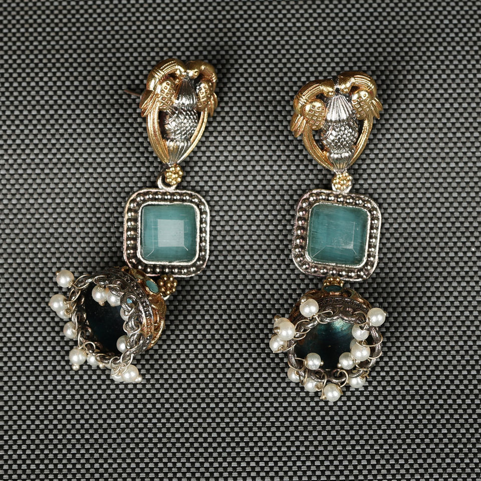 ต่างหูเงินแท้แบบจุมก้า ทำมือ สไตล์โบราณ โบโฮ ประดับด้วยหินสีเขียว ของขวัญสำหรับเธอ