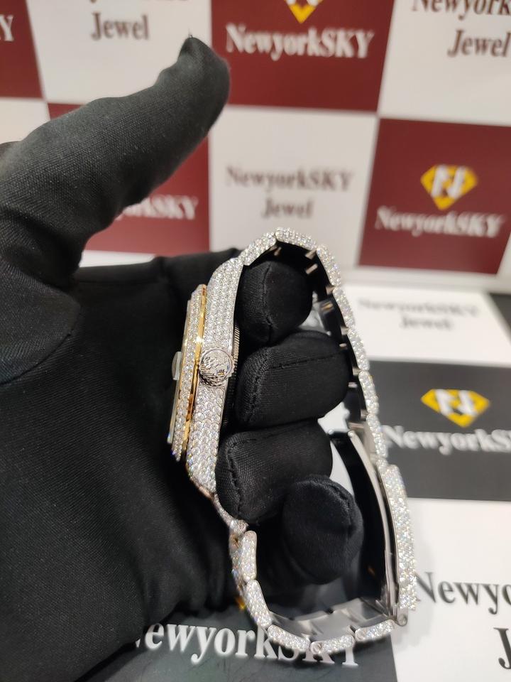 นาฬิกาควอทซ์กลไกสายสแตนเลสสตีลของผู้ชายเครื่องทดสอบเพชรโมอิสซาไนต์สไตล์ฮิปฮอปผู้ผลิตในอินเดีย