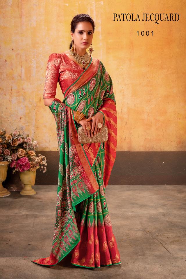 ผ้าไหมปาโตลา บานาราซี สำหรับทำชุดส่าหรี แฟชั่นใหม่ ชุดออกงาน พร้อมเสื้อคลุมสไตล์อินเดีย สำหรับผู้หญิง รุ่นซารียา ไลฟ์สไตล์ หมายเลข 004 ยาวกรอมพื้น