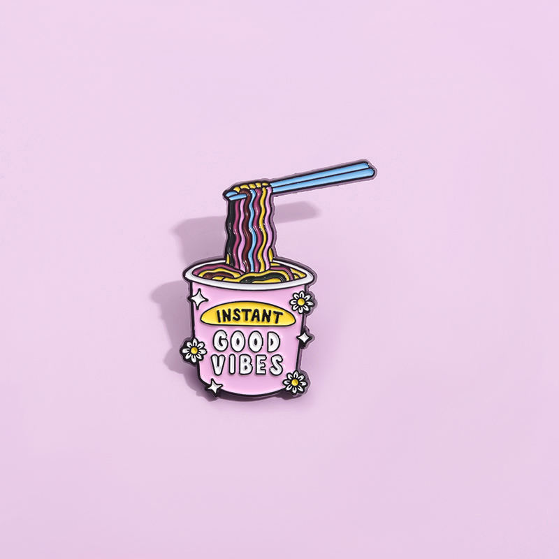 เข็มกลัดลายการ์ตูนมีฮู้ดสำหรับกระเป๋ากางเกงยีนส์มีฮู้ดเข็มกลัดเคลือบเส้นบะหมี่กึ่งสำเร็จรูปสีชมพูของขวัญที่ดีที่สุดสำหรับเด็ก