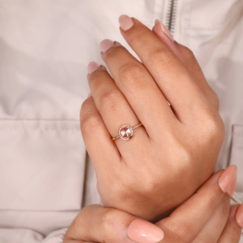 แหวนทองคำสีเหลืองทรงกลมสีชมพูประดับเพชรทรงมาร์คีส์ 1.00 กะรัต เพชรเพาะเลี้ยงในห้องปฏิบัติการ แหวนหมั้น แหวนแต่งงาน เครื่องประดับ แหวนทอง 14k