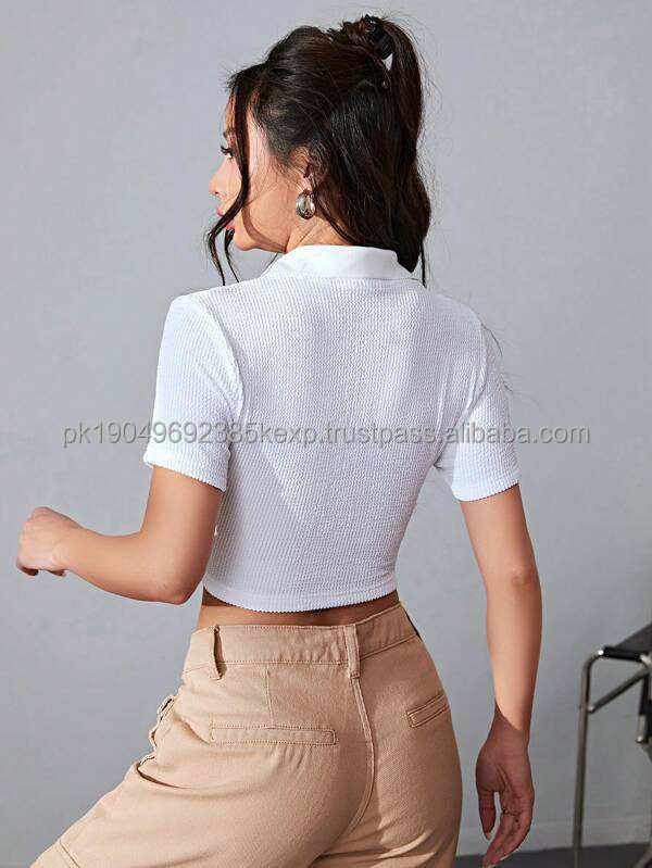 เสื้อโปโลผู้หญิงแบบบางสีขาวธรรมดาโลโก้ออกแบบได้ตามต้องการ