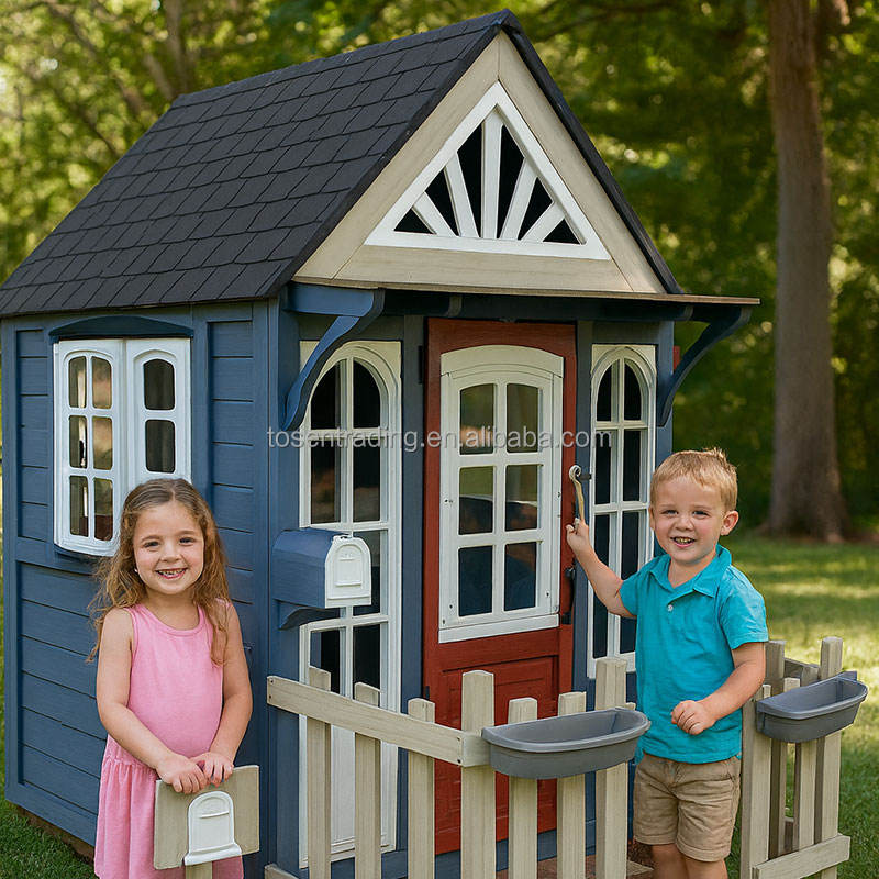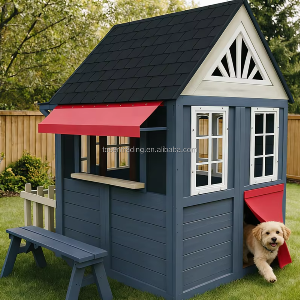 บ้านไม้เด็กเล่นทรงกระท่อมหลังคาทรงโค้ง รุ่น Tosen Cedared พร้อมรั้วและชั้นวางต้นไม้ สำหรับเด็กอายุ 3-12 ปี ของเล่นเสริมพัฒนาการสำหรับสนามหลังบ้าน