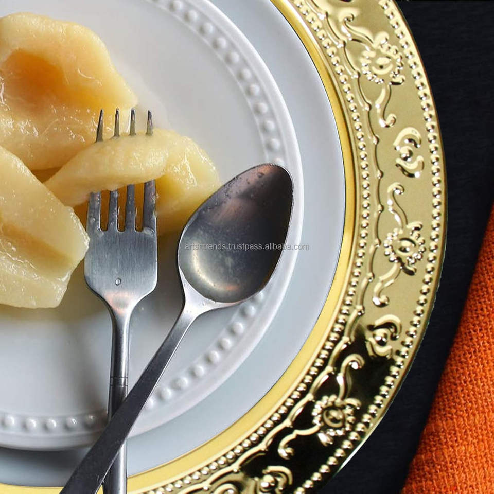 จานที่ชาร์จโลหะสำหรับอาหารเย็นและบนโต๊ะอาหารจานอาหารสำหรับตกแต่งโรงแรมบ้านมีดีไซน์ตามสั่ง