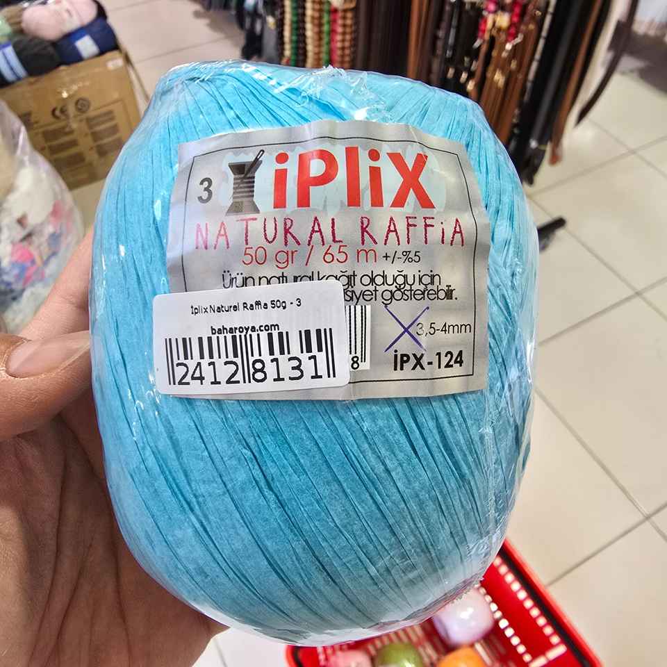 İplix เส้นด้ายใยปาล์มธรรมชาติ50g-Dyed 32สีสำหรับถักทอผ้าสีฟ้าอ่อน