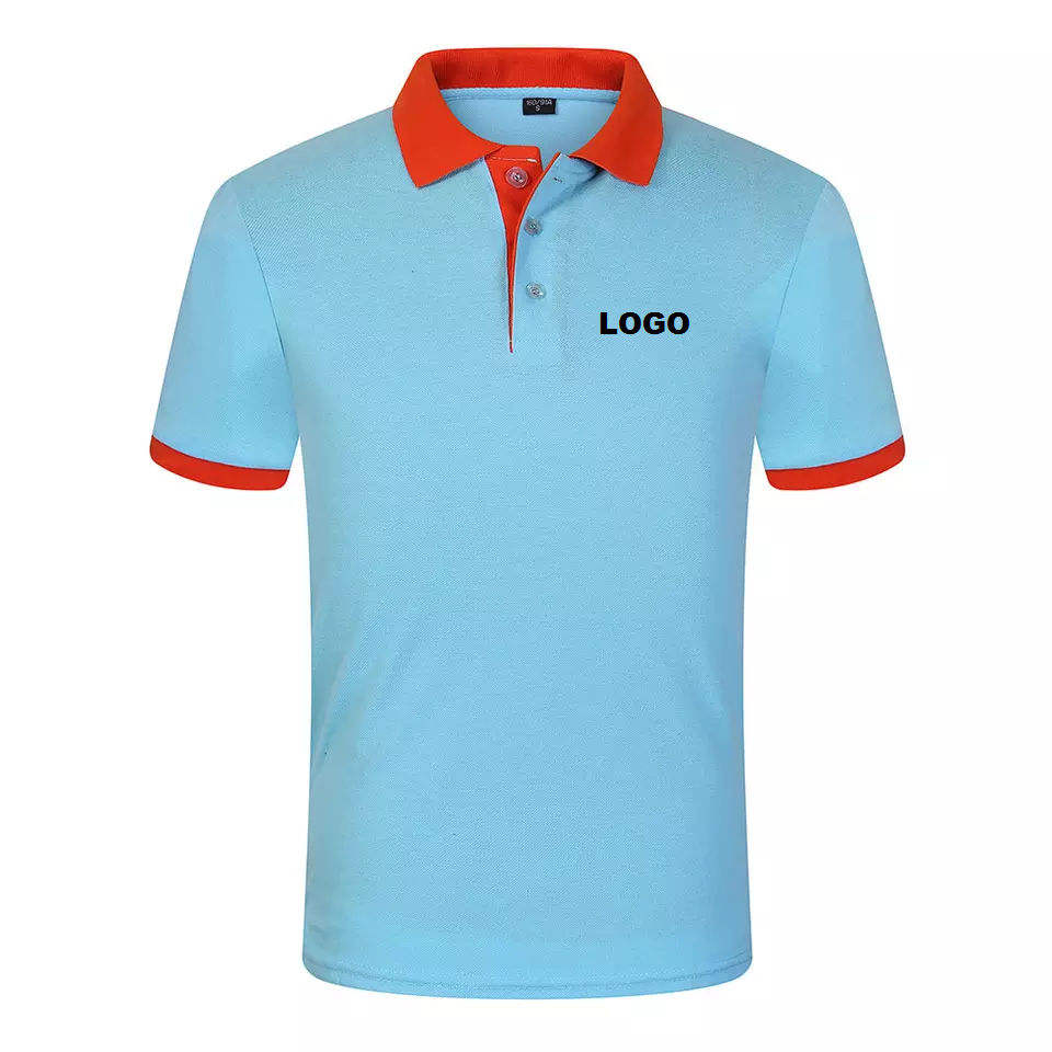 เสื้อโปโลสีขาวคอโปโลผ้าฝ้าย100% ใส่ได้ทั้งชายและหญิงเสื้อโปโลคอสีฟ้าออกแบบโลโก้ได้ตามต้องการ
