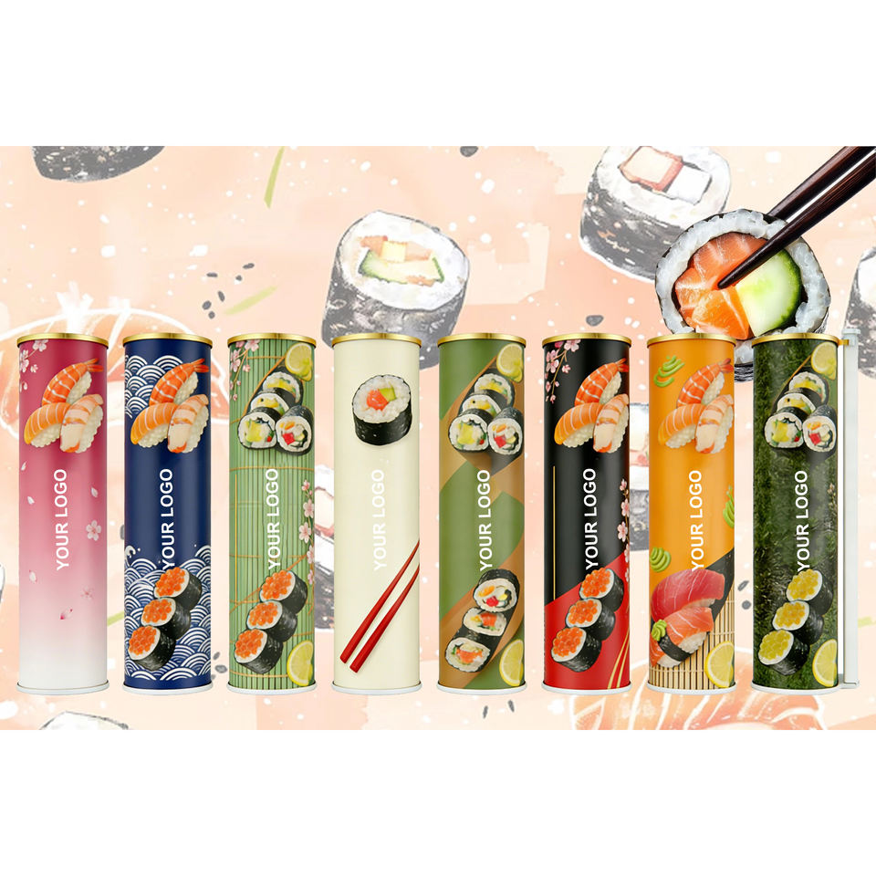 กล่องซูชิแบบป๊อปอัพ คอนเซ็ปต์ซูชิป๊อปอัพ บรรจุภัณฑ์ทรงกระบอก กล่องซูชิแบบกดเปิด วัสดุเกรดอาหาร