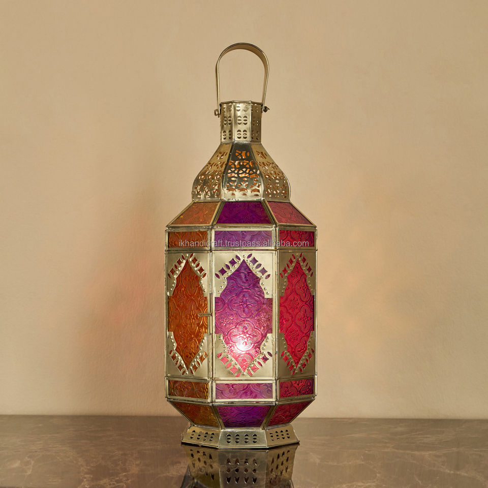 โคมไฟแก้วโมรอคโคสียอดนิยมตะเกียงชาสินค้ามาใหม่ตามหลักจริยธรรมตกแต่งบ้านขวดโหลแก้วโลหะต่ำโคมไฟเหล็กจำนวนมาก