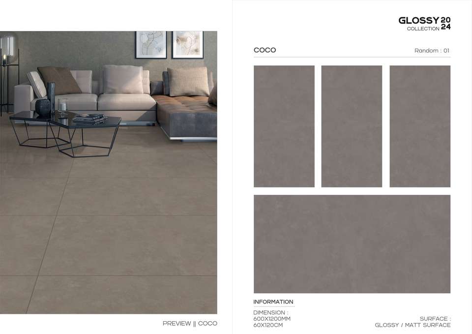 กระเบื้องพอร์ซเลนผิวมันเงาและด้าน ขนาด 60x120 ซม. 600x1200 มม. 24x48 นิ้ว สำหรับงานตกแต่งผนังและพื้นภายในสไตล์โมเดิร์น