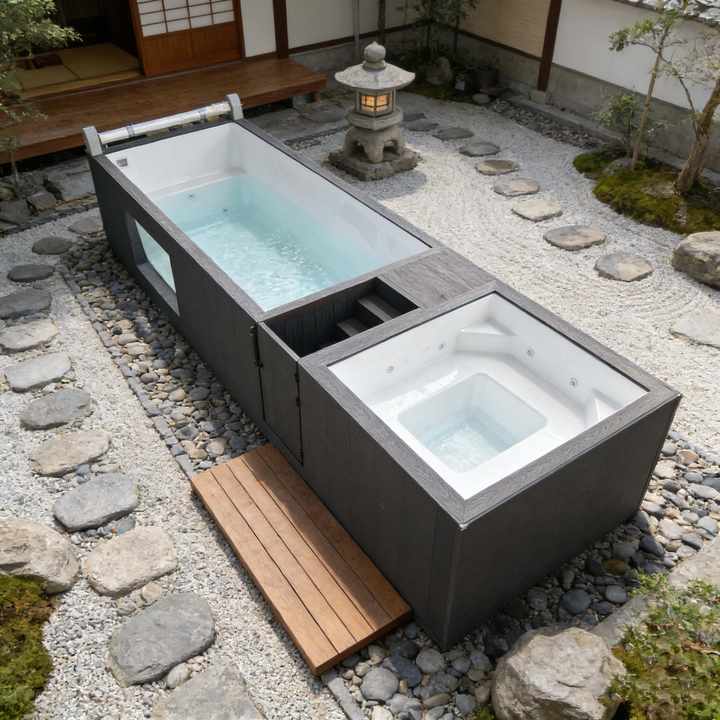 สระว่ายน้ำแบบพกพา สระว่ายน้ำทรงสี่เหลี่ยมผืนผ้า ทำจากไฟเบอร์กลาส สระว่ายน้ำแบบจุ่ม