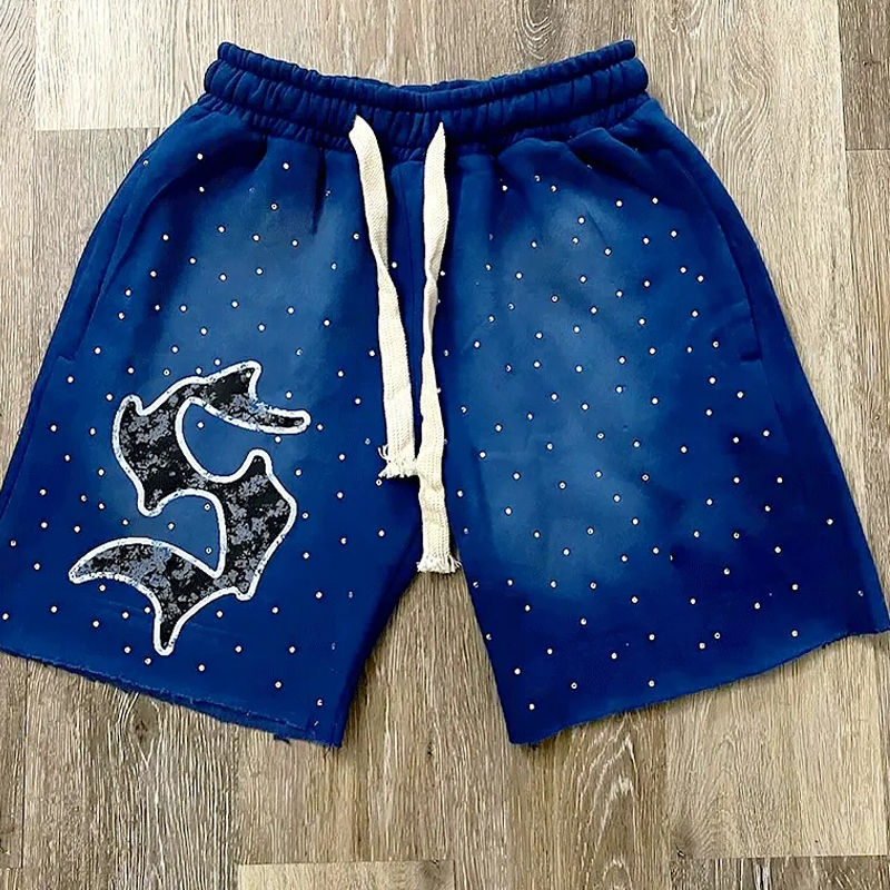 กางเกงขาสั้นพลอยเทียมคุณภาพสูงสำหรับผู้ชายกางเกงขาสั้นของผู้ชายแบบลำลองลายสตรีทแวร์ผ้าฝ้าย100% ซีดแสงแดด