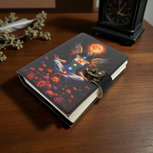 สมุดโน้ตปกแข็งพิมพ์ลายทำจากหนังเทพธิดาทำสมาธิสมุดโน้ตปกแข็งกระดาษวาดภาพลายพระอาทิตย์และตะขอทองเหลือง