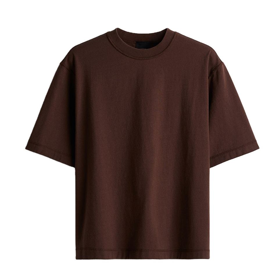เสื้อยืดออกกำลังกายผู้ชายคุณภาพสูงทรงโอเวอร์ไซส์ ดีไซน์คอกลมเรียบง่าย เสื้อผ้ากีฬาแบบไหล่ตก รับสกรีนโลโก้