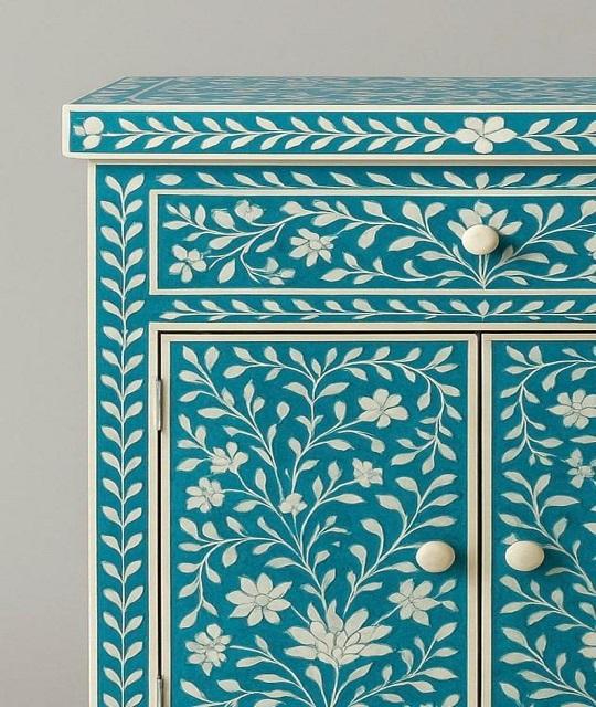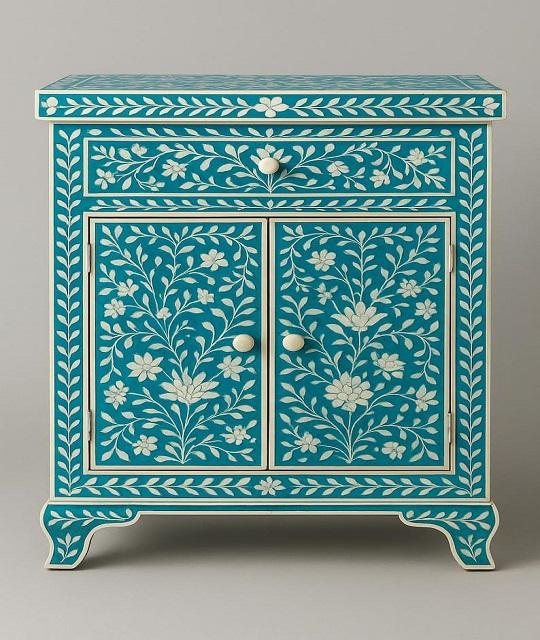 โต๊ะข้างลิ้นชัก3อันฝังลายดอกไม้ทำมือของแม่มุกของอินเดียเฟอร์นิเจอร์ห้องนอนห้องนั่งเล่นโดย F S I