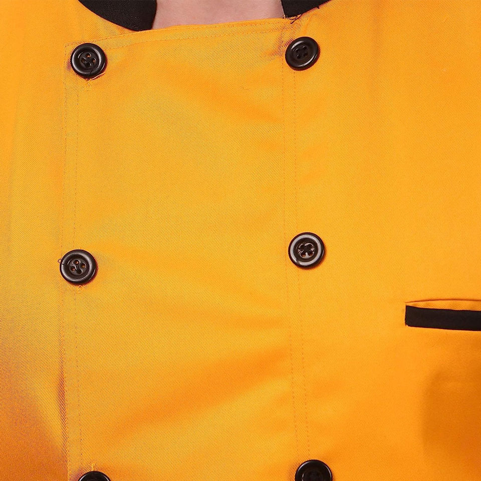 เสื้อเชฟแขนยาวแบบมืออาชีพ กระดุมสองแถว ปิดด้วยกระดุม คอตั้ง ยูนิเซ็กซ์ สีเหลือง ผ้าฝ้าย