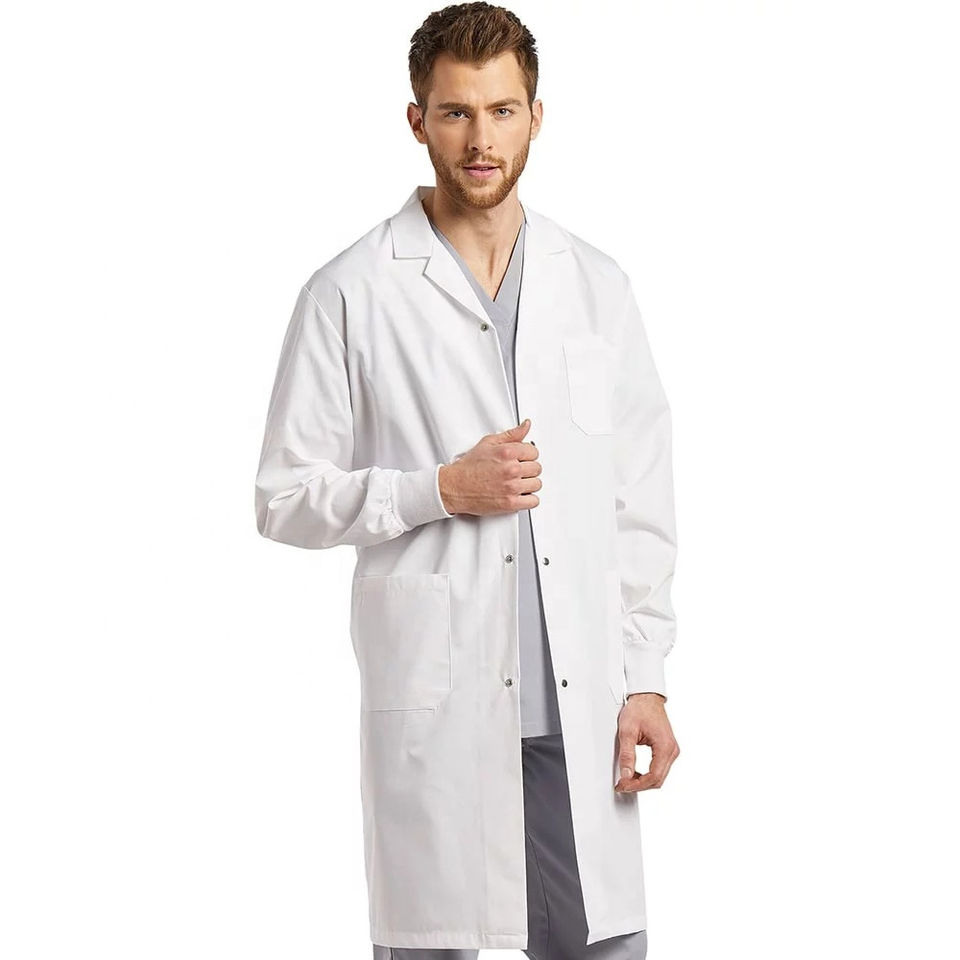 เสื้อคลุมทางการแพทย์แขนยาวสีขาวสำหรับผู้ชายเสื้อโค้ทสำหรับร้านขายยาชุดคลุมความงามสำหรับผู้หญิงร้านขายสัตว์เลี้ยง