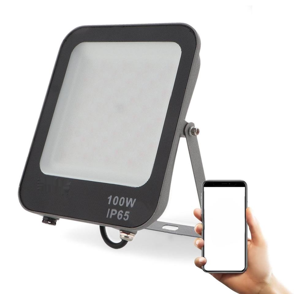 โปรเจคเตอร์ LED 100 วัตต์ RGB+CCT, ปรับสีและอุณหภูมิแสงได้, เหมาะสำหรับการตกแต่งและสร้างบรรยากาศภายในอาคาร