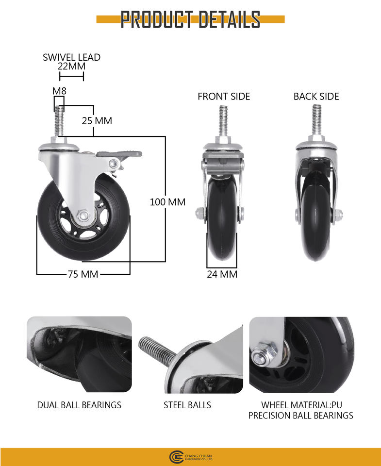 3นิ้ว (75มม.)เส้นผ่าศูนย์กลางล้อ