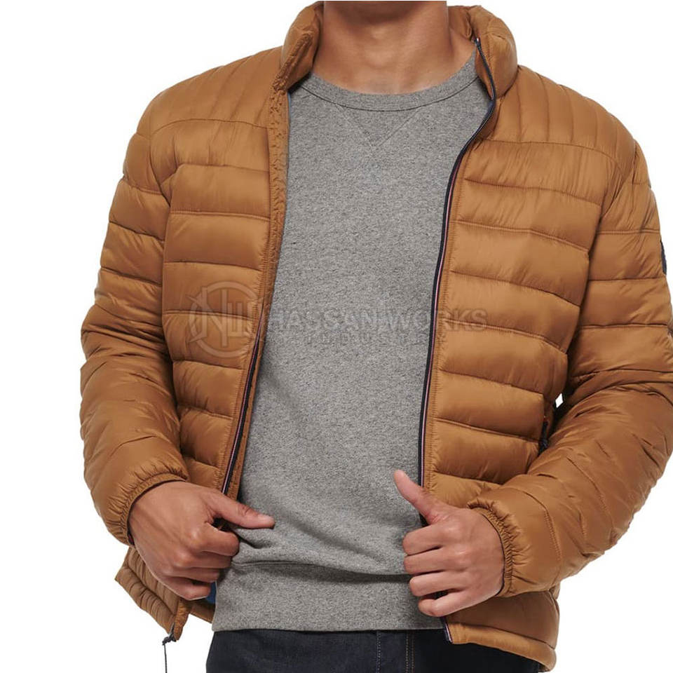 ผลิตจากวัสดุคุณภาพดี เสื้อแจ็คเก็ตพัฟเฟอร์ผู้ชายแบบคอตั้ง เป็นมิตรต่อสิ่งแวดล้อม ระบายอากาศได้ดี รับผลิตแบรนด์ส่วนตัว เสื้อแจ็คเก็ตลำลองสำหรับฤดูหนาว