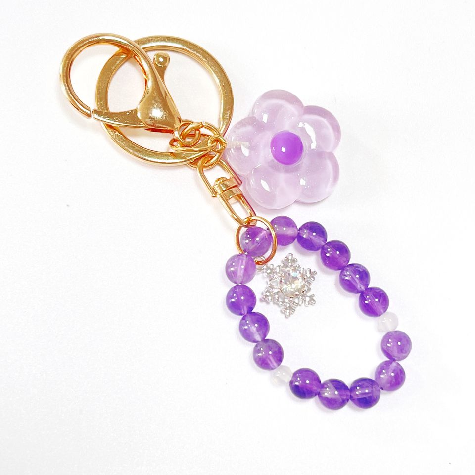 ชื่อผลิตภัณฑ์:พวงกุญแจโลโก้เก๋ไก๋จี้ลูกปัดดอกไม้อเมทิสต์