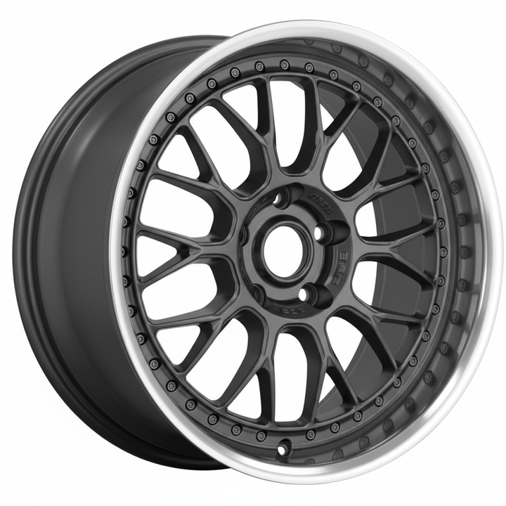 ล้อรถแข่งสไตล์คลาสสิคย้อนยุคแบบตาข่าย ล้อฟอร์จขอบสเต็ปสีเทาเมทัลลิก ขนาด 17 18 นิ้ว สำหรับ BMW E30 VW Golf MK4