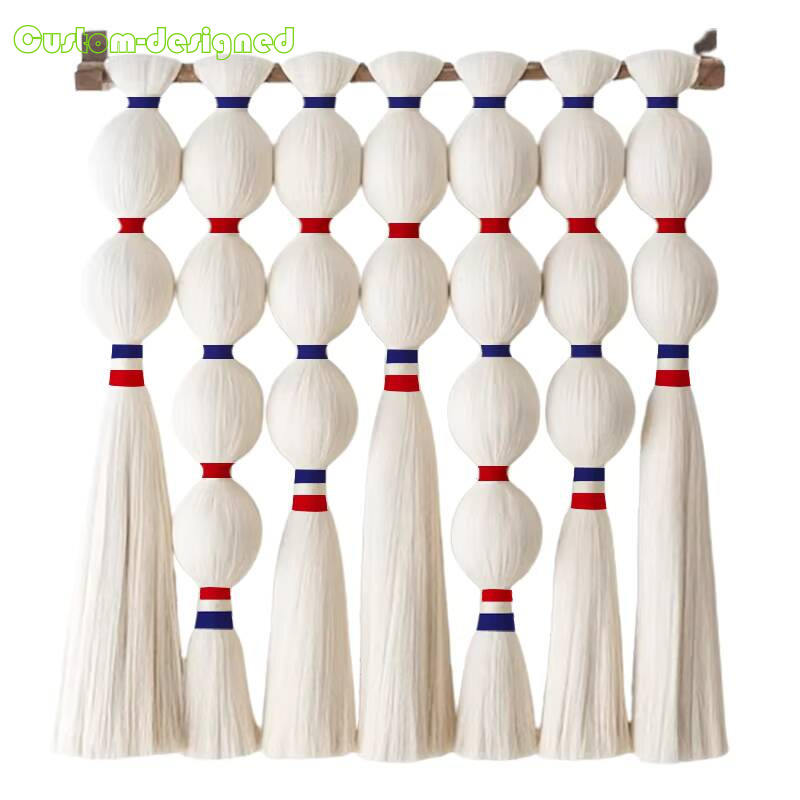 Rame แขวนผนังเชือกคอตตอนทำด้วยมือสไตล์โบโฮพร้อมพู่สำหรับตกแต่งห้องนอนและตกแต่งบ้านพรมแขวนผนัง