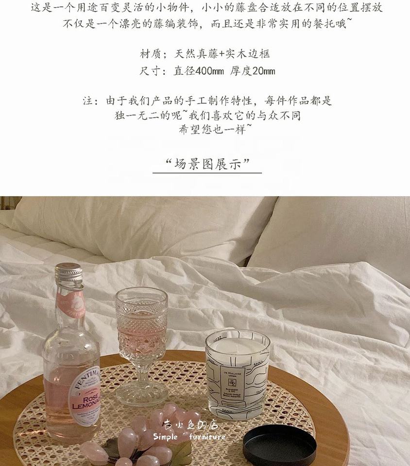 เครื่องประดับแผ่นหวายตกแต่งสไตล์เกาหลี,อุปกรณ์ตกแต่งรูปภาพถาดอาหารทรงกลมเครื่องประดับย้อนยุคไม้เนื้อแข็ง