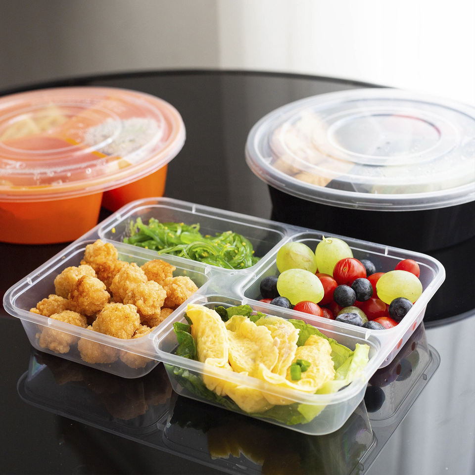 กล่องพลาสติกสำหรับใส่อาหารกล่องอาหารแบบใช้แล้วทิ้ง1 2 3 4 5 6ช่องกล่องอาหารสีดำทรงสี่เหลี่ยมผืนผ้าเข้าไมโครเวฟได้