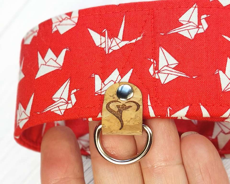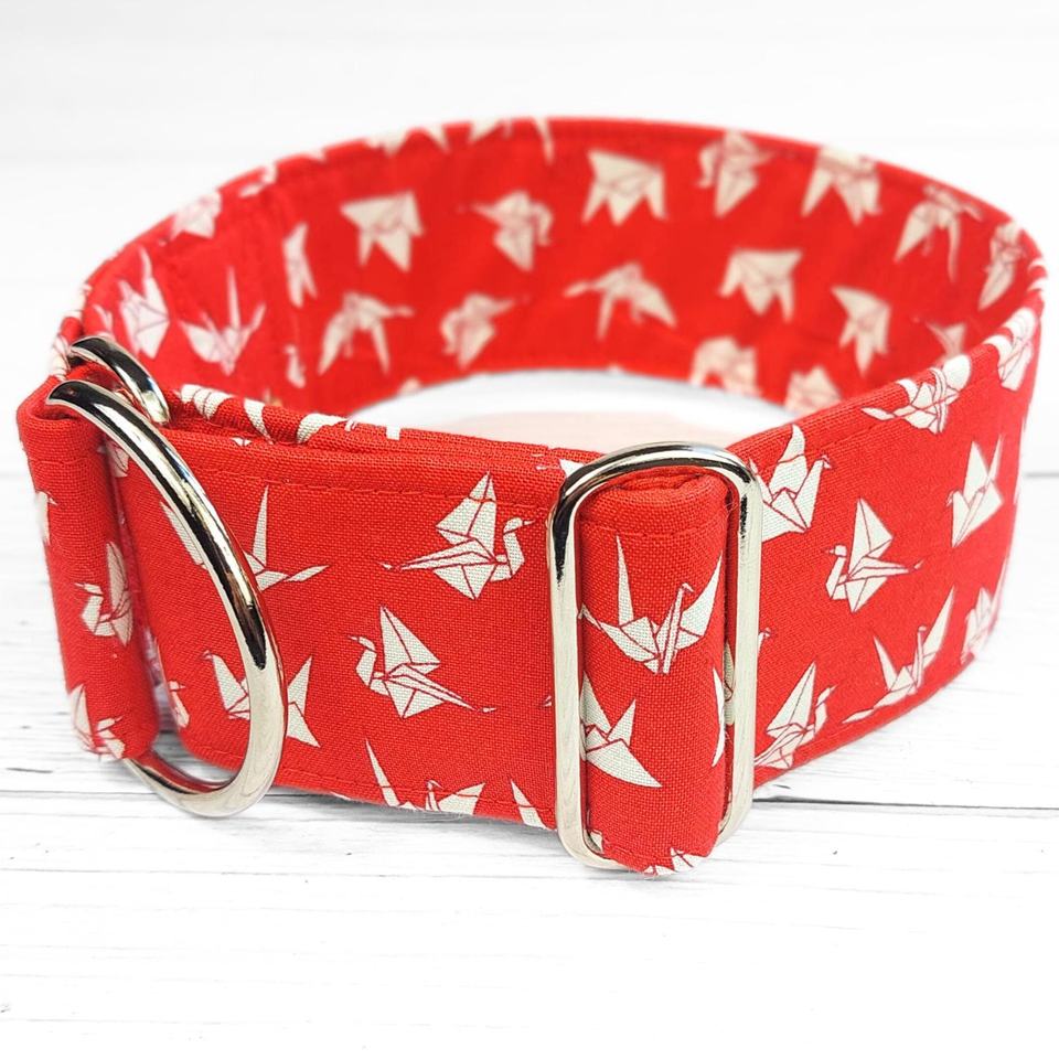 ปลอกคอสุนัขเกรย์ฮาวด์สีแดงลายนกกระเรียนผ้าสไตล์เอเชียปลอกคอหรือหัวเข็มขัดแบบจำกัด