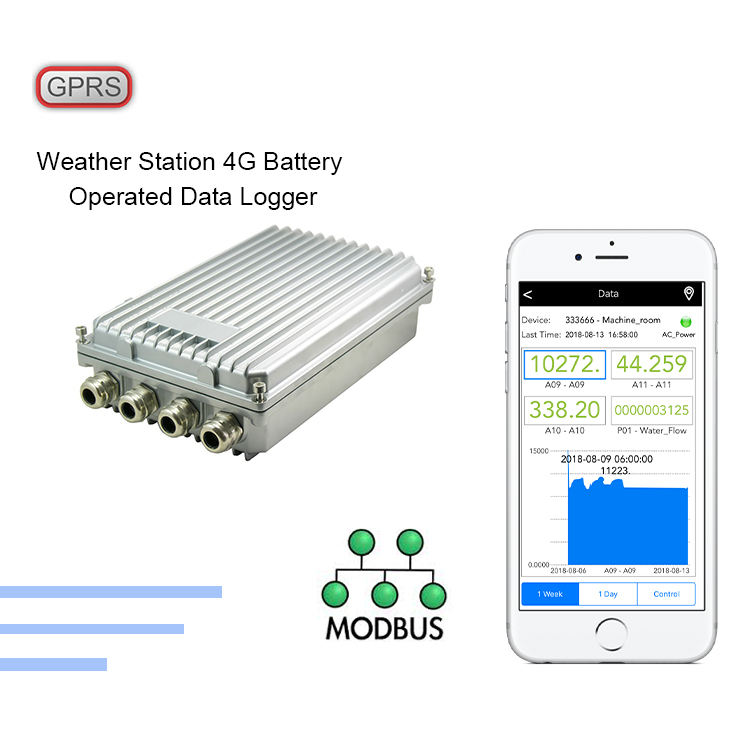 เครื่องบันทึกข้อมูลสถานีสภาพอากาศแหล่งจ่ายไฟแบตเตอรี่ควบคุมระยะไกลพร้อมช่องใส่ซิมการ์ด