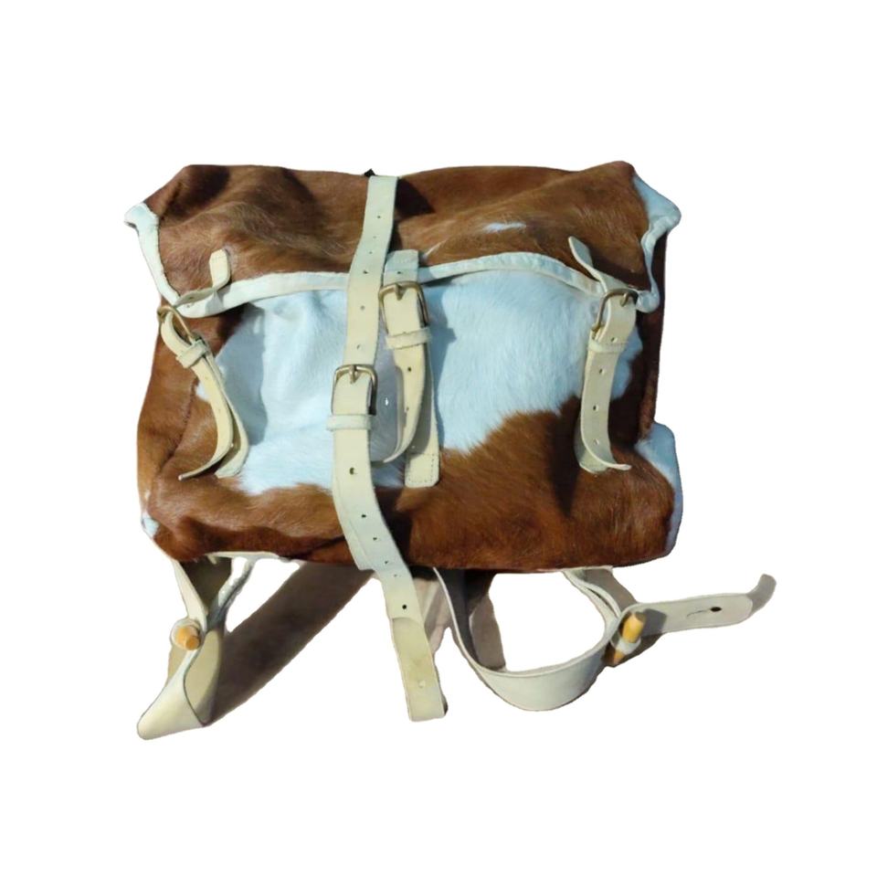 กระเป๋าเป้สะพายหลังหนังวัวฝรั่งเศสสไตล์นโปเลียน สีขาว ทำจากหนังแท้ อาจเป็นรุ่นสมัยใหม่หรือใช้สำหรับการจำลองสถานการณ์ทางประวัติศาสตร์