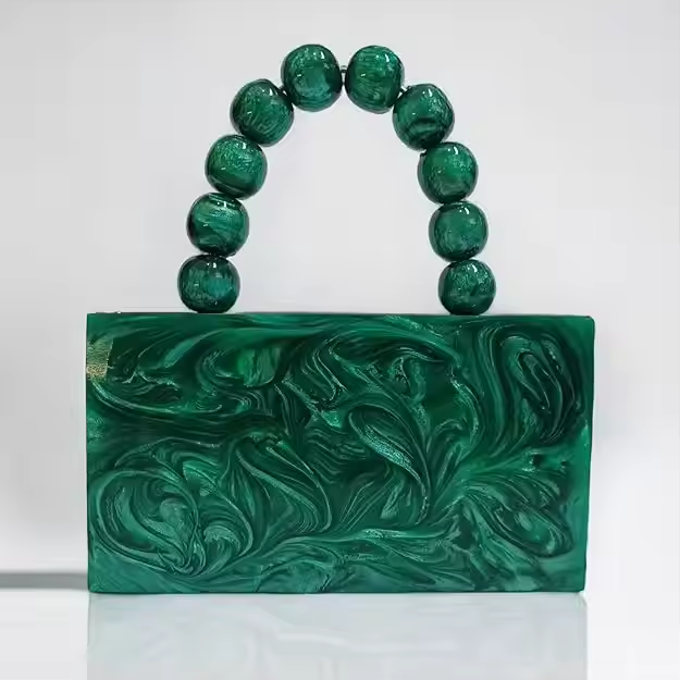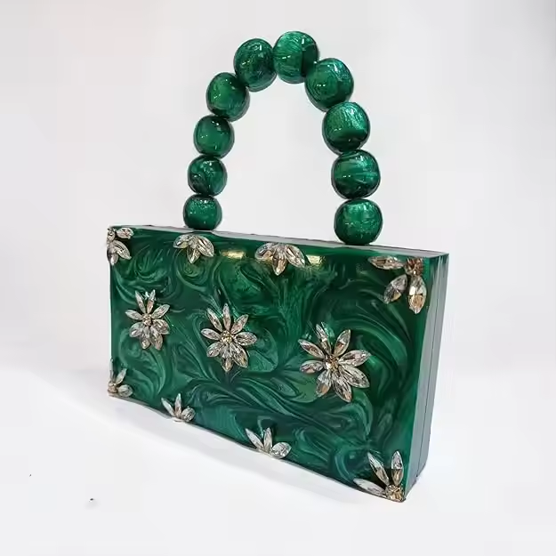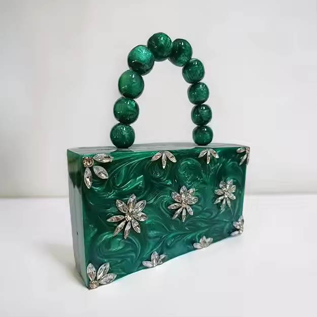 กระเป๋าคลัทช์เรซิ่นที่มีดีไซน์ดอกไม้คลัทช์อะคริลิคเรซิ่นสำหรับทันสมัยและมีสไตล์ดูอินเทรนด์ด้วยงานฝีมือเสี้ยว