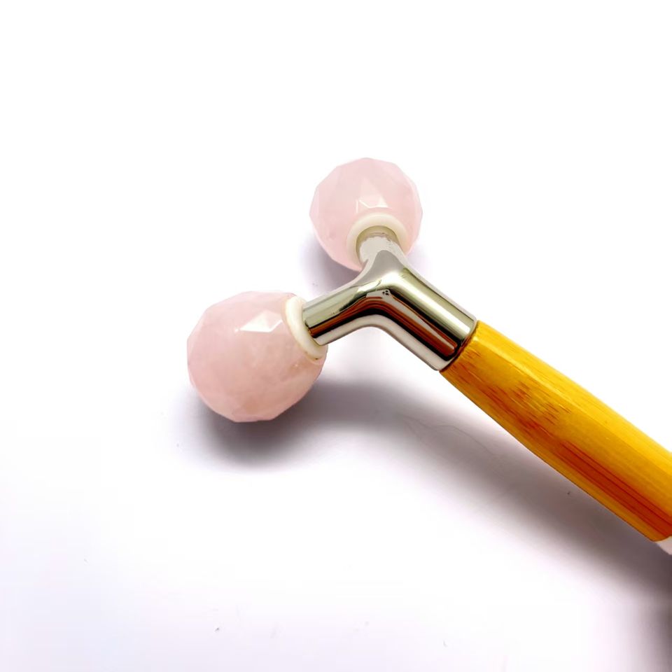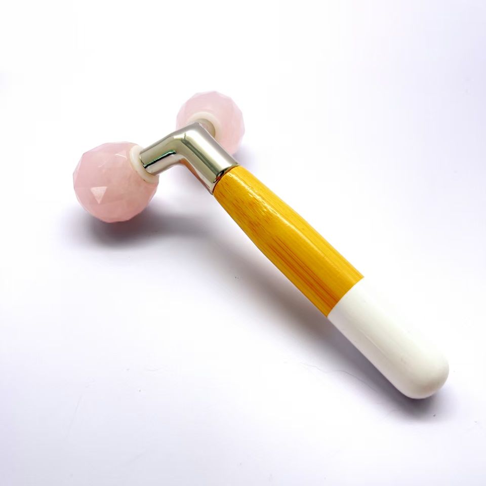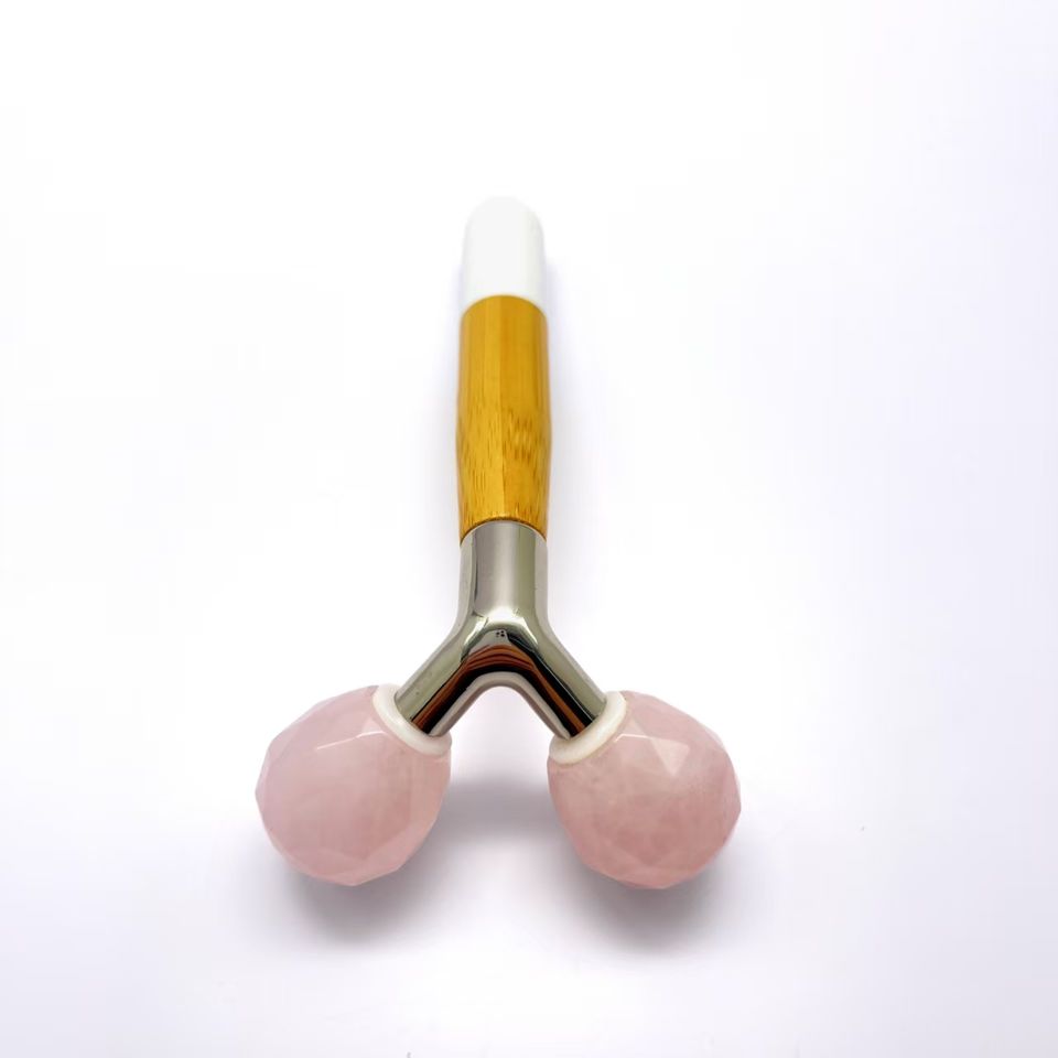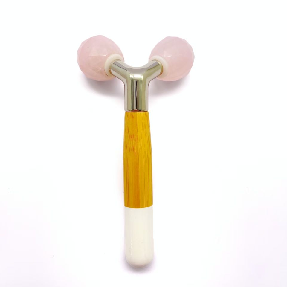 โรสควอตซ์หินหยกธรรมชาติหมุนได้360องศาเครื่องมือดูแลผิวรูปตัว Y ลูกกลิ้งทำน้ำแข็งบนใบหน้า