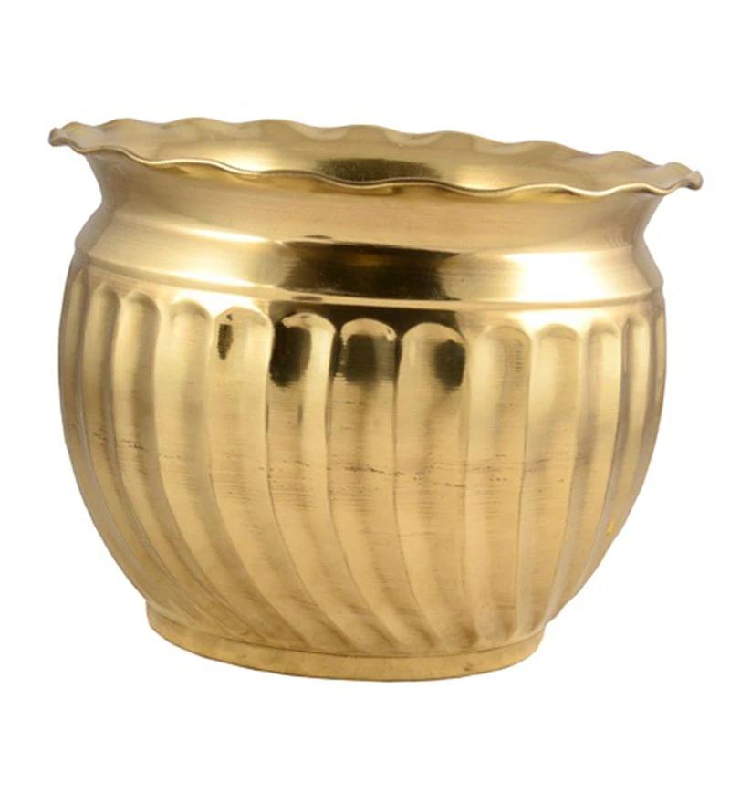 กระถางดอกไม้ทองเหลืองทรงกลมพร้อมที่จับสำหรับแต่งบ้านในร่มและกลางแจ้ง